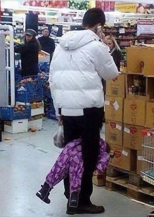 This has to be the cheapest baby carrier out there. I don't think it's made in China. Just shove your baby between your legs and take that call on your cell phone.