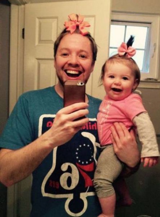 I don't know who looks cuter the baby or the daddy that looks like a baby. Somebody go get mommy these two are getting too silly!