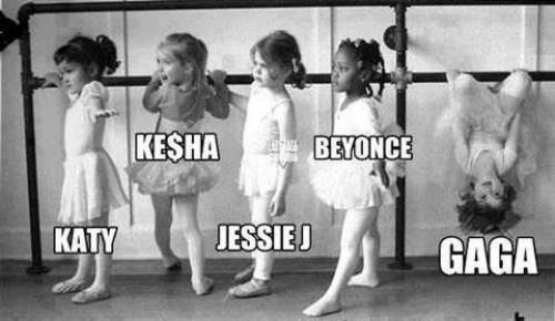 All the major female pop stars in contemporary music are depicted here in this picture as children. I guess Lady Gaga has always been like that.