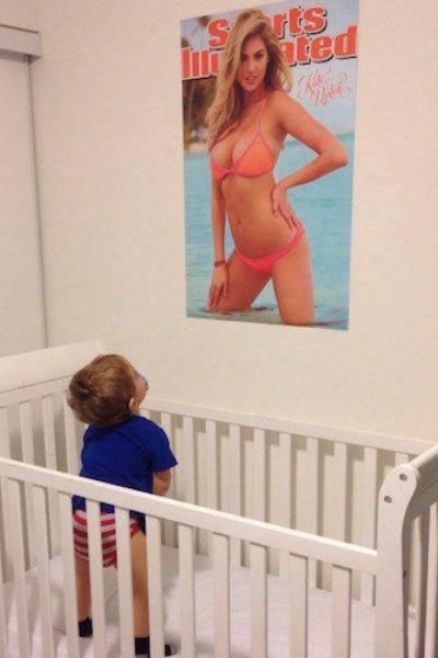 Baby Loves Kate Upton. Baby Crib Sports Illustrated Swimsuit Edition Parenting Fail.