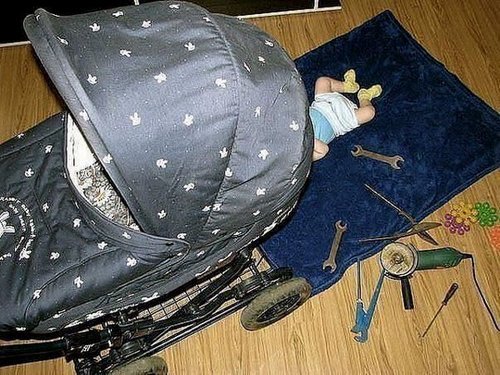 Baby Mechanic Repairs Stroller