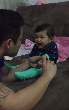 This baby already knows how to make the men around her adore her! Her daddy can't stop laughing while she tries to scare him with her adorable "ahhh!" sounds!