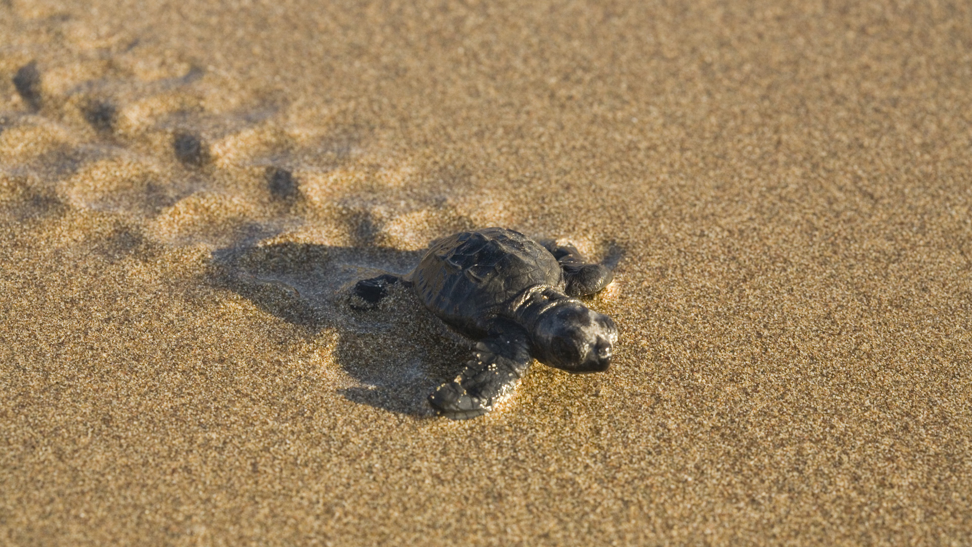 When sea turtles hatch, they're vulnerable as they make their way to the sea. Birds and other predators know it, and have no trouble picking up a quick meal.