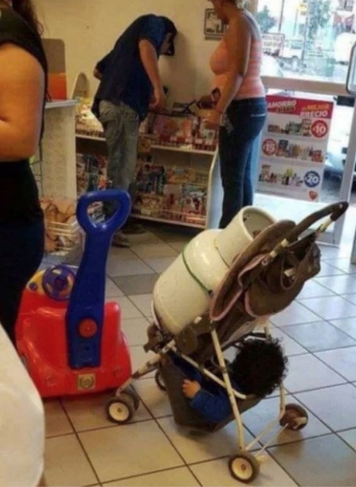 Get your baby stroller propane tanks at Walmart and throw your baby in the bottom of the stroller. They are great for the family BBQ!