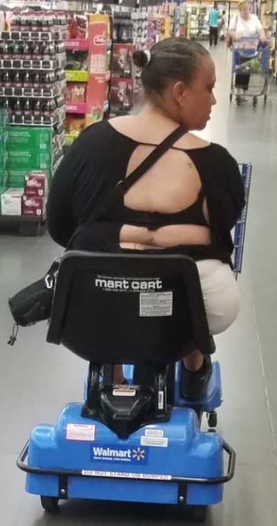Looks like scooters are back and so is the open back top showing your bra. Somebody get her a shirt that covers the back too!