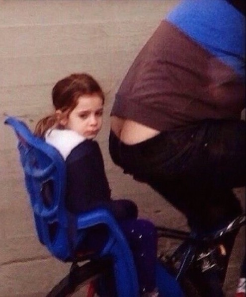 Back Seat Butt Crack. Tandem Bike Ride Parenting Fail