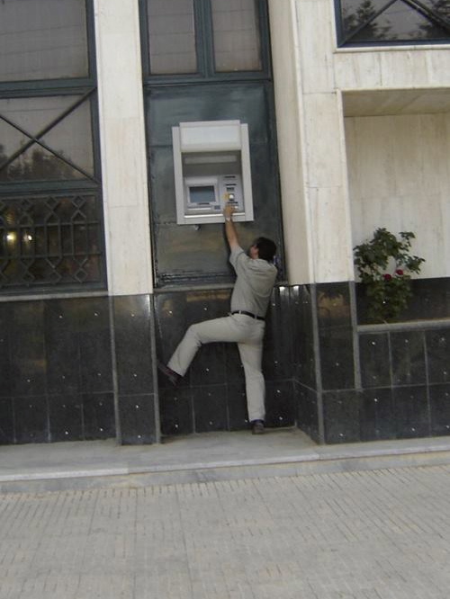 What genius designed this ATM placement? How can people withdraw their money now? What is this? An ATM for NBA Players?