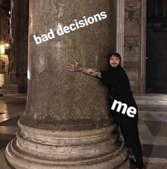 This sums it all up. I'm embracing all my bad decisions. I need to do less of that.