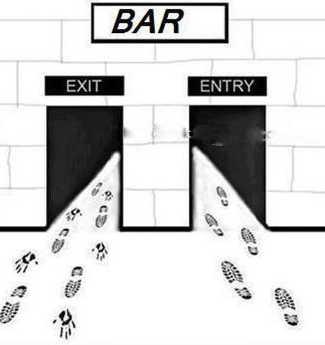 Bar Entry and Exit. Lots of footprints going in! Footprints and handprints coming out...LOL somebody is a little too drunk and must have stumbled and fell on their hands ;-)