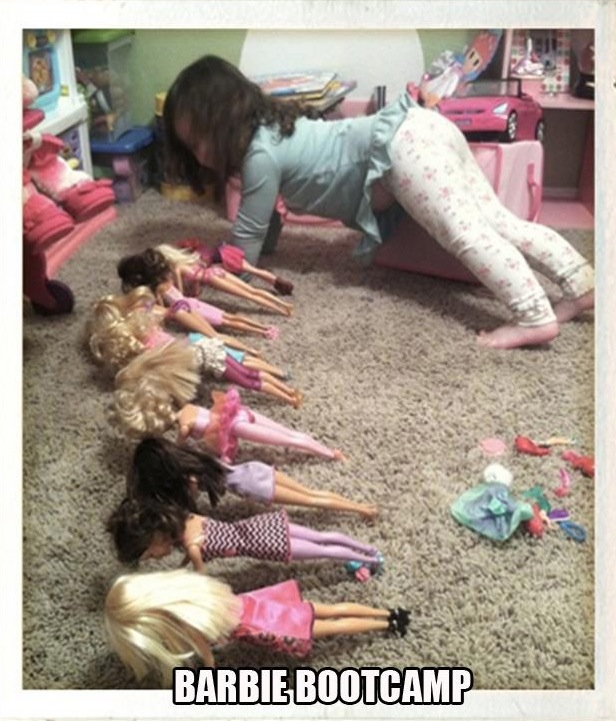 This has to be the most adorable photo. This little girl has all her barbies doing pushups. I wonder if they can make it in the army