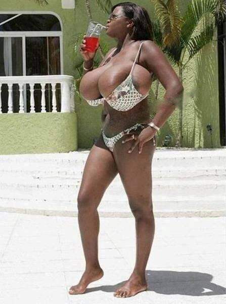 Bare Feet Girl with Boobs Busting Out of Bikini Top. Can You Say Back Pain?