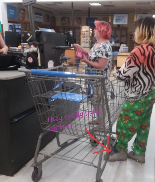 It must be loud with lights day at Walmart. They must be buying a pack of batteries for their sneakers.