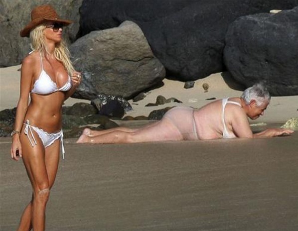 Wow. It's nice to be on a beach and enjoy the view. These two make it all worth it. To die for! Not sure if I like the left or right one the best. They are both so hot.