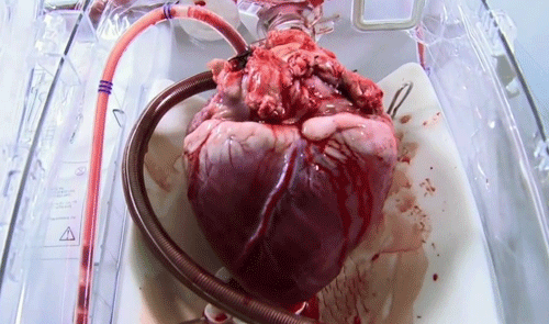 This heart is beating and ready to be transplanted into a new heart patient. All it needs is blood to pump and it's ready to go!