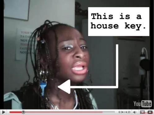This girl is wearing a key on her ear. I guess she wants to make sure she never gets locked out of the house. You can't lose these keys.