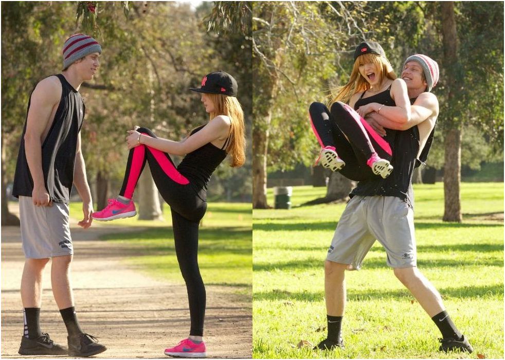 Tristan Klier playfully picks girlfriend actress @bellathorne up in his arms on Tuesday afternoon (February 26) in Los Angeles.