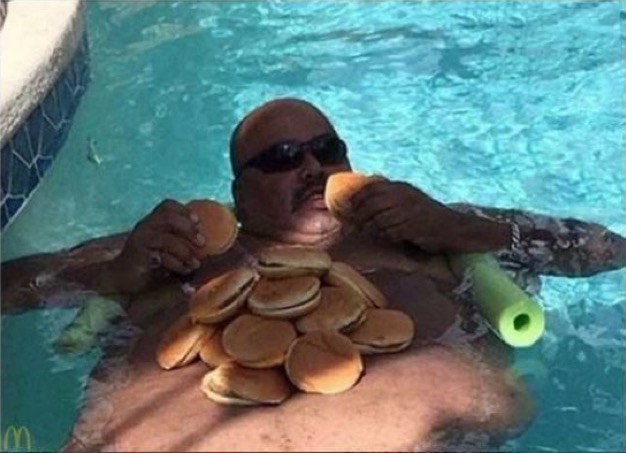 I think McDonald's should use this guy as their spokesperson. Not only does he look the part but he also uses the product even when he's in the pool.