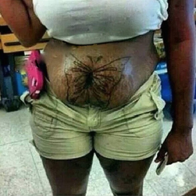 Belly Butterfly Tattoo. No Way Girl. Tattoo on Stretch Marks. Walmart Navel Fail