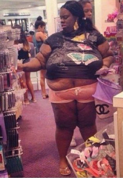 This is definitely the last thing I want to see when shopping at Walmart. She definitely needs a longer shirt!