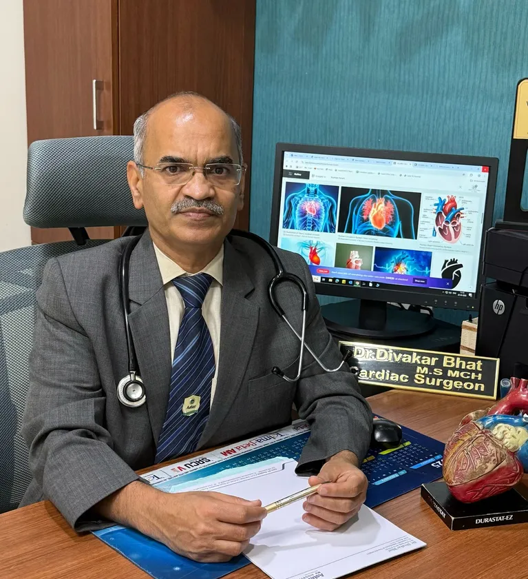 Dr. Divakar Bhat is a renowned cardiothoracic and vascular surgeon in Bangalore, specializing in adult cardiac surgery. With over 35 years of experience, he has independently performed more than 3,500 surgeries and assisted in over 6,000 procedures. His expertise encompasses beating heart CABG, valve repairs, pediatric heart operations, and minimally invasive techniques. Dr. Bhat practices at Aster RV Hospital in JP Nagar and serves as the Chief Cardiac Surgeon at Mallya Hospital. For more information, visit drdivakarbhat.com.