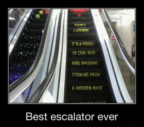 This is probably an escalator that all nerds (myself included) will go crazy for. The epic rolling lines from the prologue of Star Wars Episode IV: A New Hope.