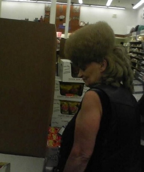 You already known walmart has the best prices. Did you also know that if you have difficult hair help is definitely available? This woman will need some serious help... is that an afro?