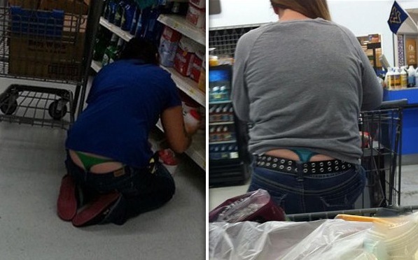 I think everybody in the entire store is either bare bottomed or has on thongs. Nobody wears regular underwear there. It's a regular crack emporia.