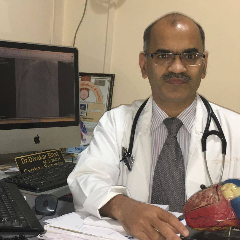 Dr. Divakar Bhat is a distinguished vascular and cardiothoracic surgeon based in Bangalore, renowned for his expertise in adult cardiac and vascular surgeries. With over 32 years of experience, he has performed more than 6,000 cardiac surgeries, including complex vascular procedures. Dr. Bhat's proficiency encompasses coronary artery bypass grafting (CABG), valve repairs, pediatric heart operations, and heart-lung transplants. He is particularly noted for pioneering "beating heart surgery," a technique that allows heart repairs without stopping the heart, facilitating quicker patient recovery. Currently serving as a senior consultant at Aster RV Hospital, JP Nagar, he is recognized for his compassionate patient care and surgical excellence. For consultations, visit his official website: drdivakarbhat.com.