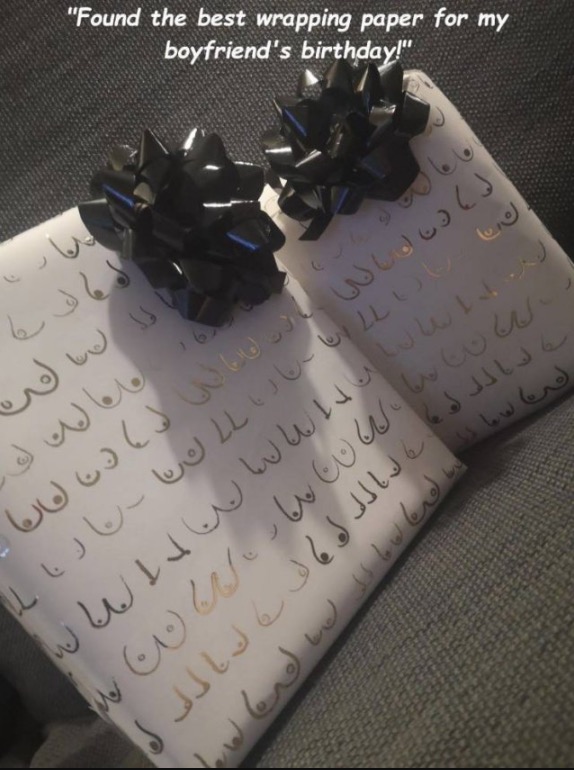 Found the best wrapping paper for my boyfriend's birthday. He can't wait to open his gifts!