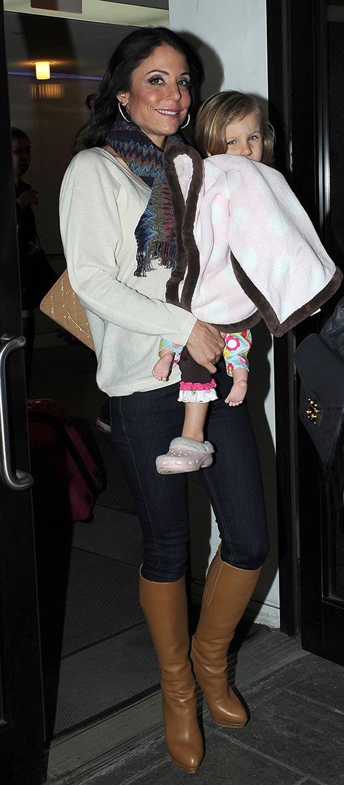 Joined by her adorable daughter Bryn Hoppy, the Skinnygirl mogul looked gorgeous as she made her exit from the Manhattan building, sporting a colorful scarf combined with a white sweater, dark wash skinny jeans, and tan boots.