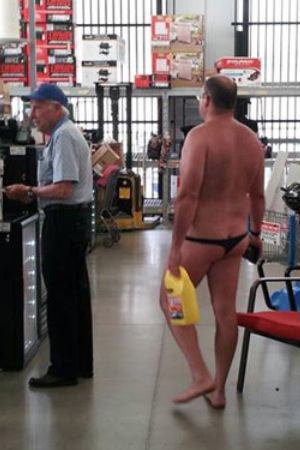 I think this guy thinks it's ok to scare people at Walmart but this attire is totally unacceptable. Next time he most definitely needs to wear a hat.