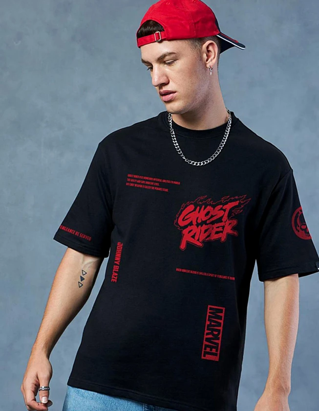 Bewakoof Heavy Duty 1.0 Men Black Spirit Of Vengeance Graphic Printed Oversized T-shirt✅https://myntr.it/Y4oSmRl