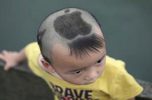 Little Chinese Boy, but his heart and his hair cut say otherwise, He is screaming "I might be small but I'm a bit Apple fan"