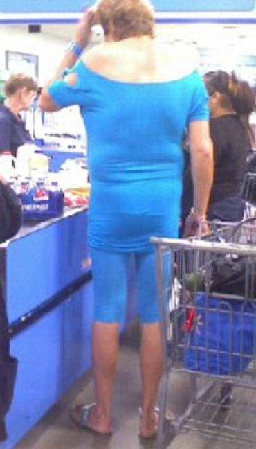Big Blue - Amazon Woman in Biker Shorts Shops at Walmart - WTF Tall