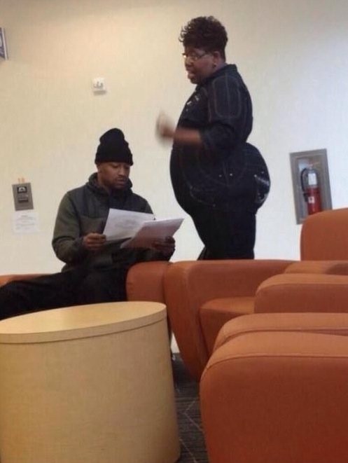 This is an action photo waiting to happen. One fart from her and you know the guy is reaching for the fire extinguisher