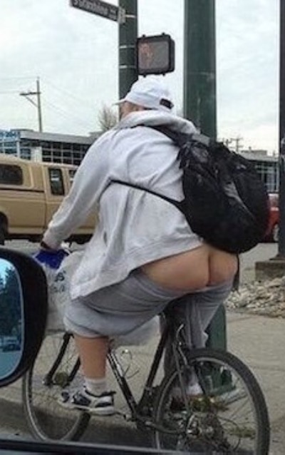 Looks like this guy is off to Walmart. First thing on his shopping list is either a belt or some underwear with a tight elastic band.