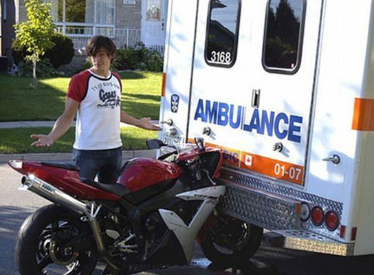 I was driving kinda fast so by the time I hit the brakes the ambulance was already hit so the only thing left to do for me was just jump from my bike to the ambulance and go to the hospital