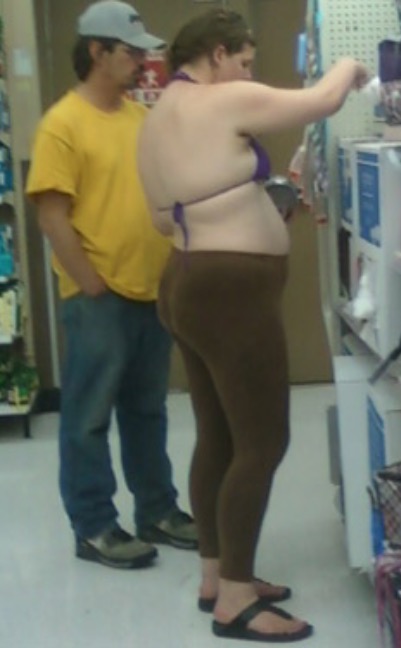 This is definitely the height of fashion at walmart. I don't think it gets much classier than this. All she needs is a confederate flag.