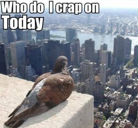 Who do i crap on today. yeah that's right being a bird is so hard its the choices that you make they are hard sometimes.