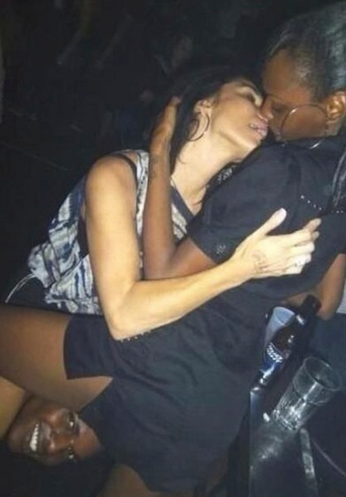 These lesbian girls should really get a room but without the guy. What the heck is his head doing down there? Damn that's scary dude. What's up?