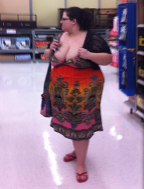 Who says you can't be bold at Walmart instead of just blending in? This outfit is guaranteed to turn heads even without the boobs.