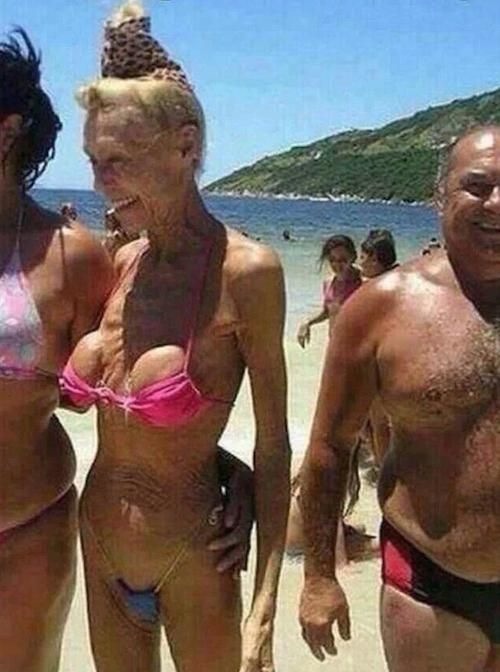 Boob Jobs Don't Die They Just Fade Away - Old Implants in Bikini on Beach Fail