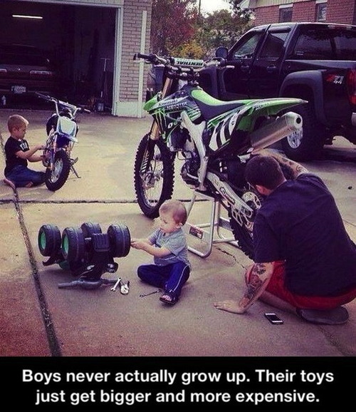 Boys never actually grow up. Their toys just get bigger and more expensive. As evidenced by the picture.