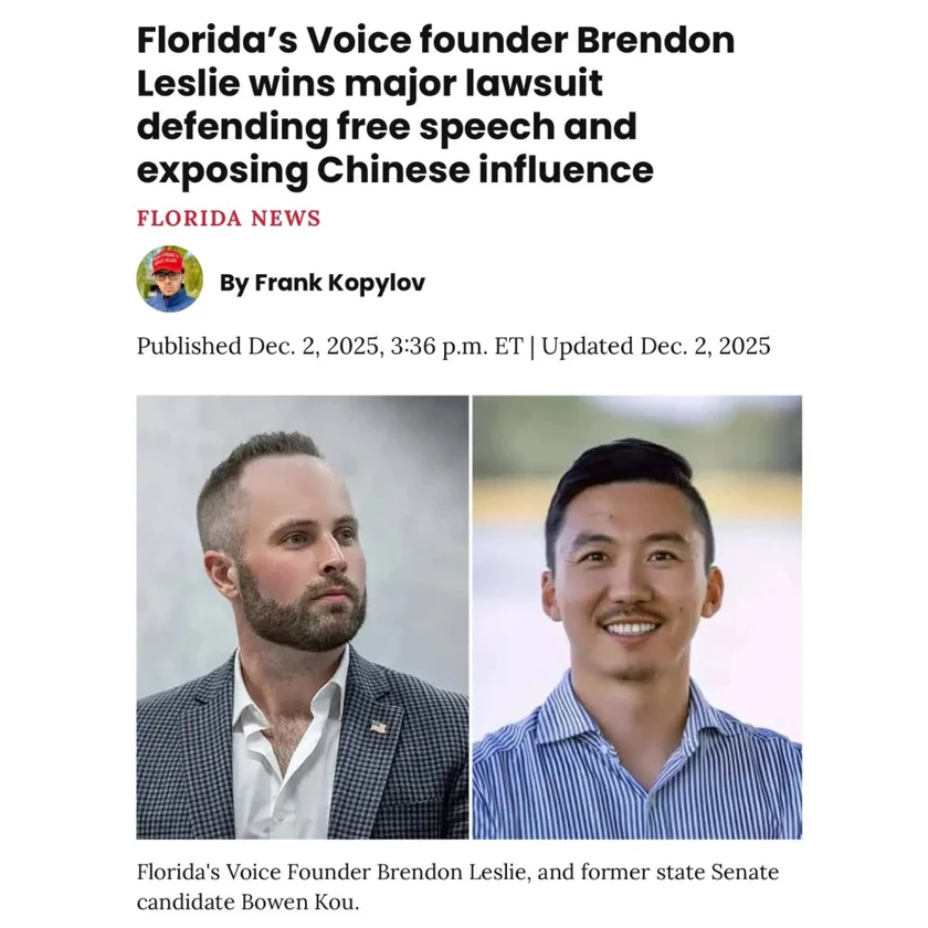 A China-linked GOP Senate candidate tried to BANKRUPT my boss and the largest independent MAGA news outlet in Florida but LOST in court.