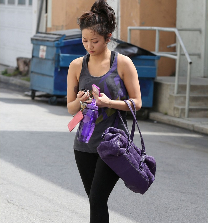 Brenda Song Purple Gym Gear in Los Angeles