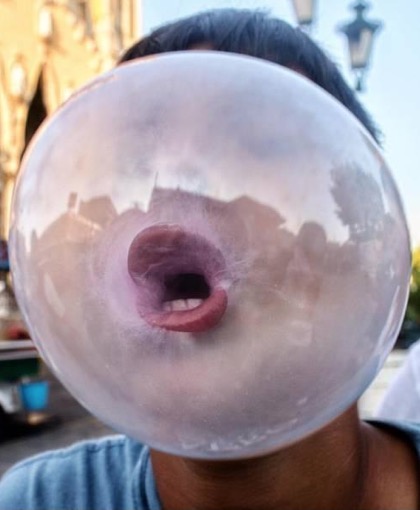 You know your bubble is really good when you start to look like a blowfish. I think his mouth is trapped in a bubble.