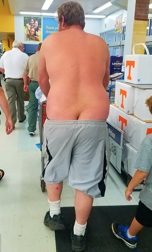 If you have a sunburn on your back don't hesitate to go to Walmart. Don't put on a shirt that will only irritate your skin. The same goes for your butt crack.