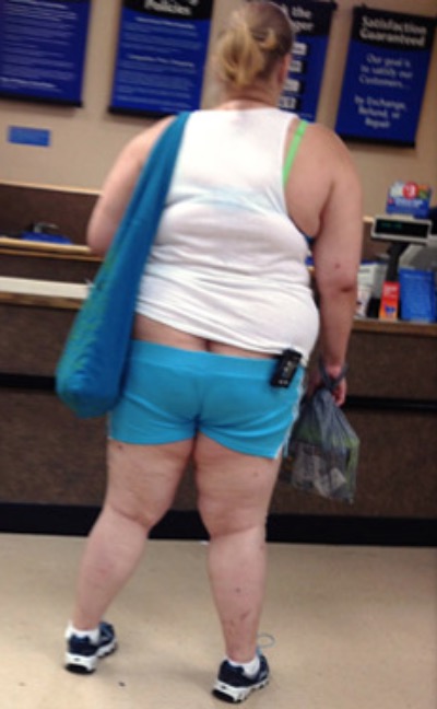 You know it's not your size when half your butt is sticking out of the shorts. She needs to consider wearing some pants that fit.
