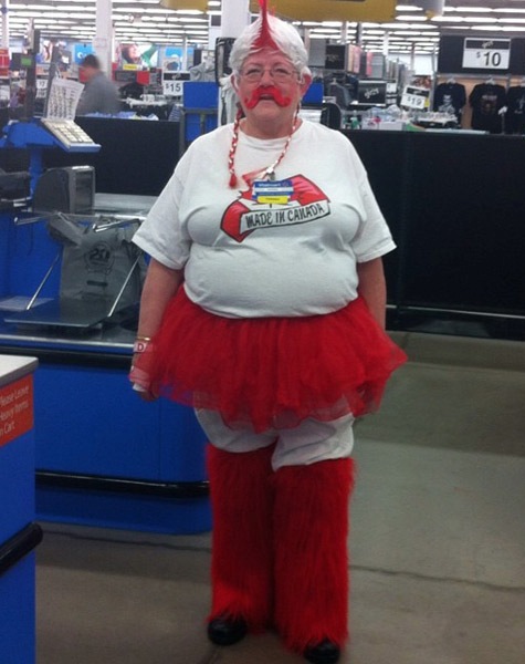 Canadian Bacon at Walmart - Red Tutu, Furry Legs, Mustache, and Boobs! WTF