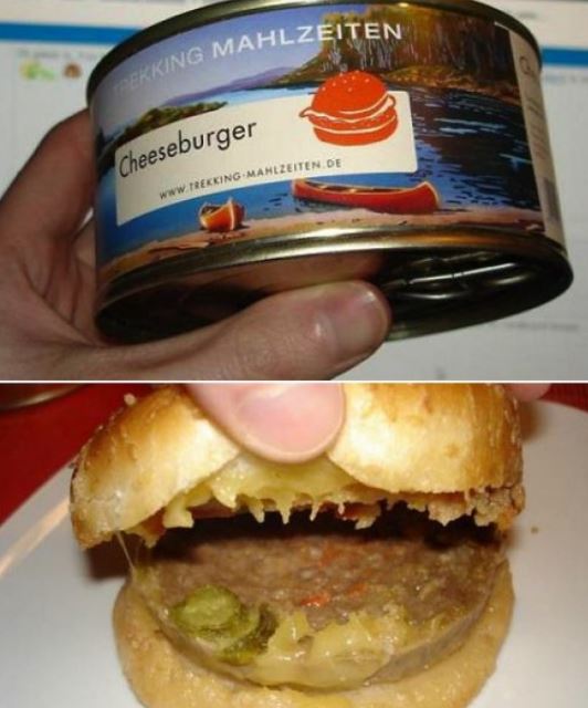 Too lazy to get a burger at your local fast food restaurant? Well grab a can of this super disgusting-looking cheeseburger to satisfy your cravings!
